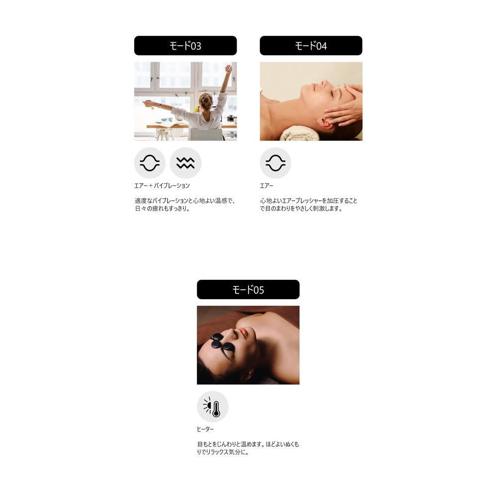 振動刺激で目もとの筋肉をやさしく刺激して日々の疲れをすっきりと。