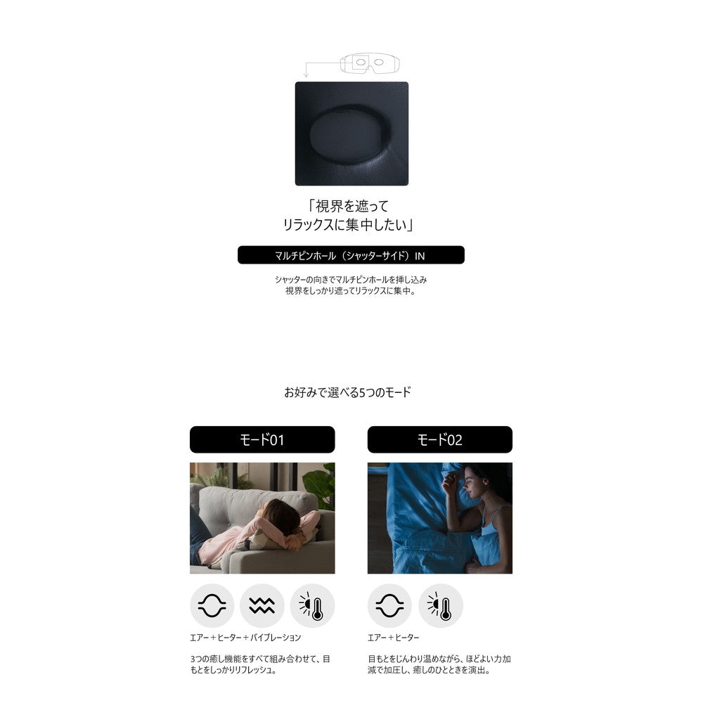 目のまわりをじんわりと温めて目もとからリラックスを促します。