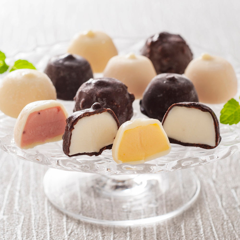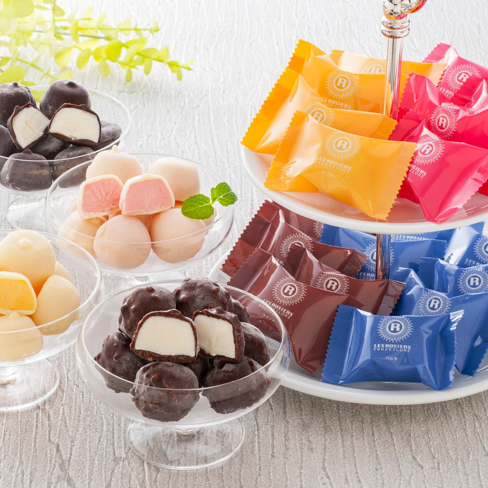 ■バニラ・クランチ・ストロベリー・マンゴーの4種類が楽しめる、一口サイズのアイスです。子どもから大人まで、みんなで楽しめるボリューム感のあるアイスギフト。フランス国家最優秀職人章「M.O.F」受章の女性天才シェフ、アンドレ・ロジェ監修。