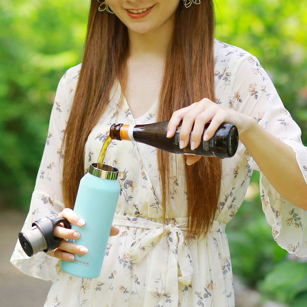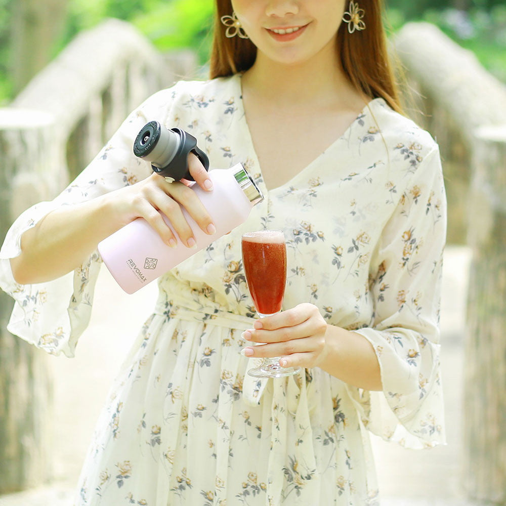 ■コンパクトな軽量スリムタイプ。SLIMになり車のドリンクホルダーにもぴったり。女性でも持ちやすく、すっと手に馴染みます。【REVOMAX独自のキャップ】新発想のキャップはREVOMAXだけ。二重密閉構造で保温・保冷効果向上。漏れも確実に防止。最高レベルの温度キープを実現。即開栓。トリガーを引いたら即ロック開閉もプッシュ式で簡単。リング状キャップで持ち運び簡単。キャップに炭酸の内圧を逃す仕組みを搭載炭酸のふきこぼれを防止