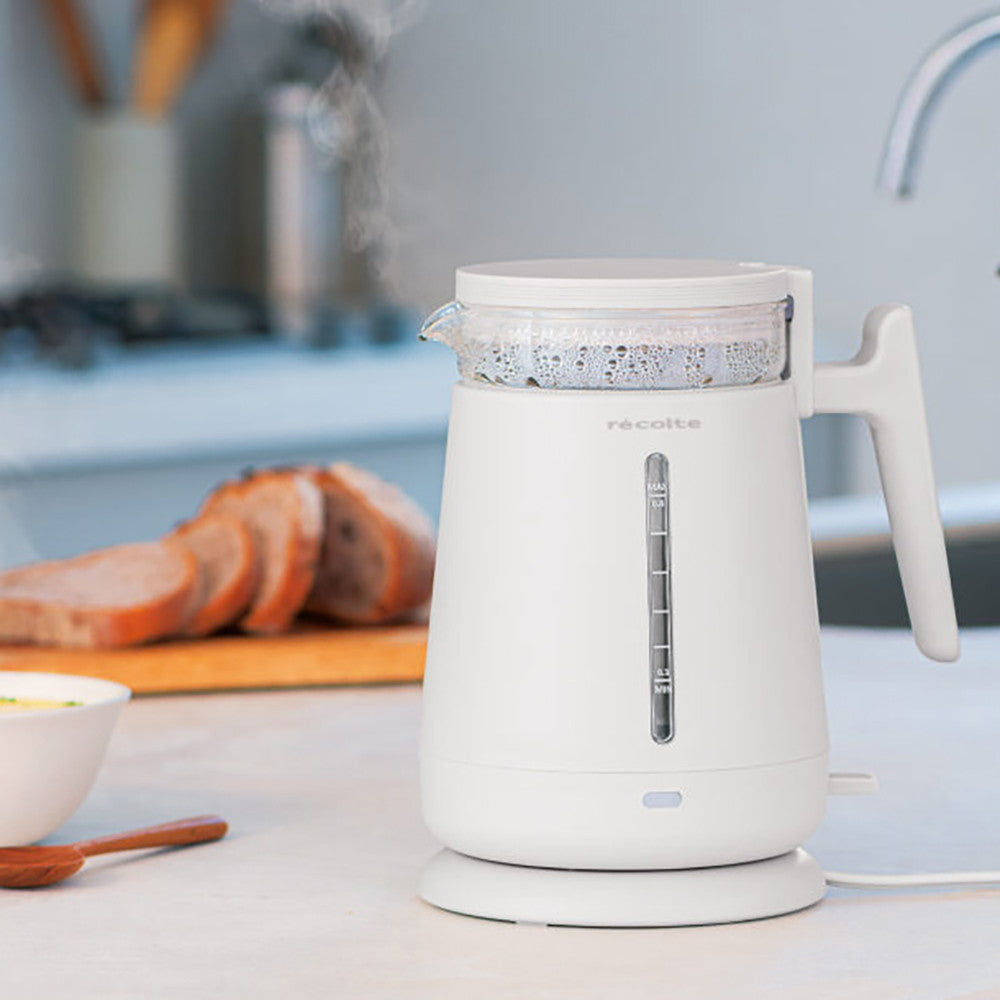 お湯ににおいが移りにくいガラスポットを、樹脂でカバー。ガラスと樹脂の間に空気層があるダブルウォール(二層構造)だから、[本体]の外側が熱くなりにくく、保温性も◎。暮らしにうれしい電気ケトルです。