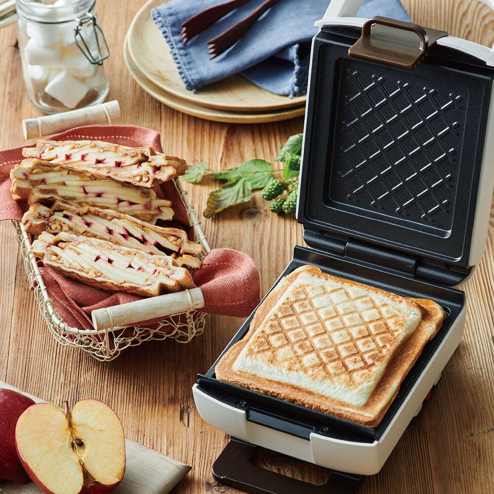 熱伝導にすぐれた固定式プレートだから、“約2分半で耳までカリッ、中はしっとり”と焼き上げます。挟む具材次第でアレンジも無限大♪豪華な書籍仕様の80ページ50レシピ掲載のスペシャルレシピブック付き。
