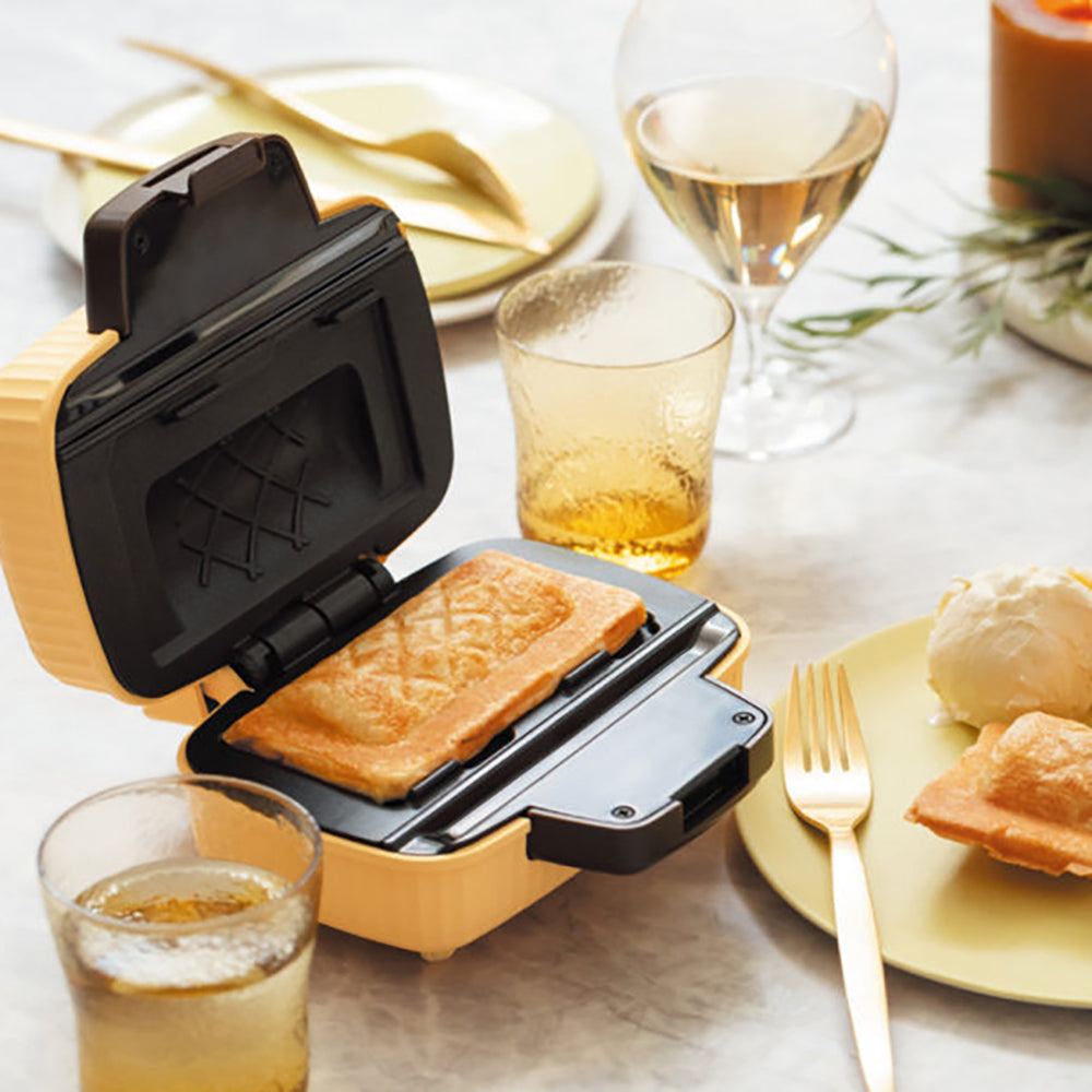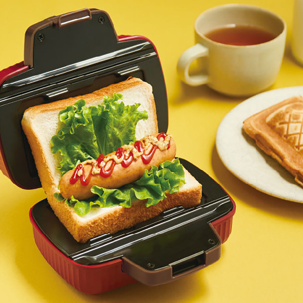 ■食パン1枚とお好きな具材で、食べきりサイズのおいしいホットサンドが手軽に作れる[プレスサンドメーカー ミニ]。
