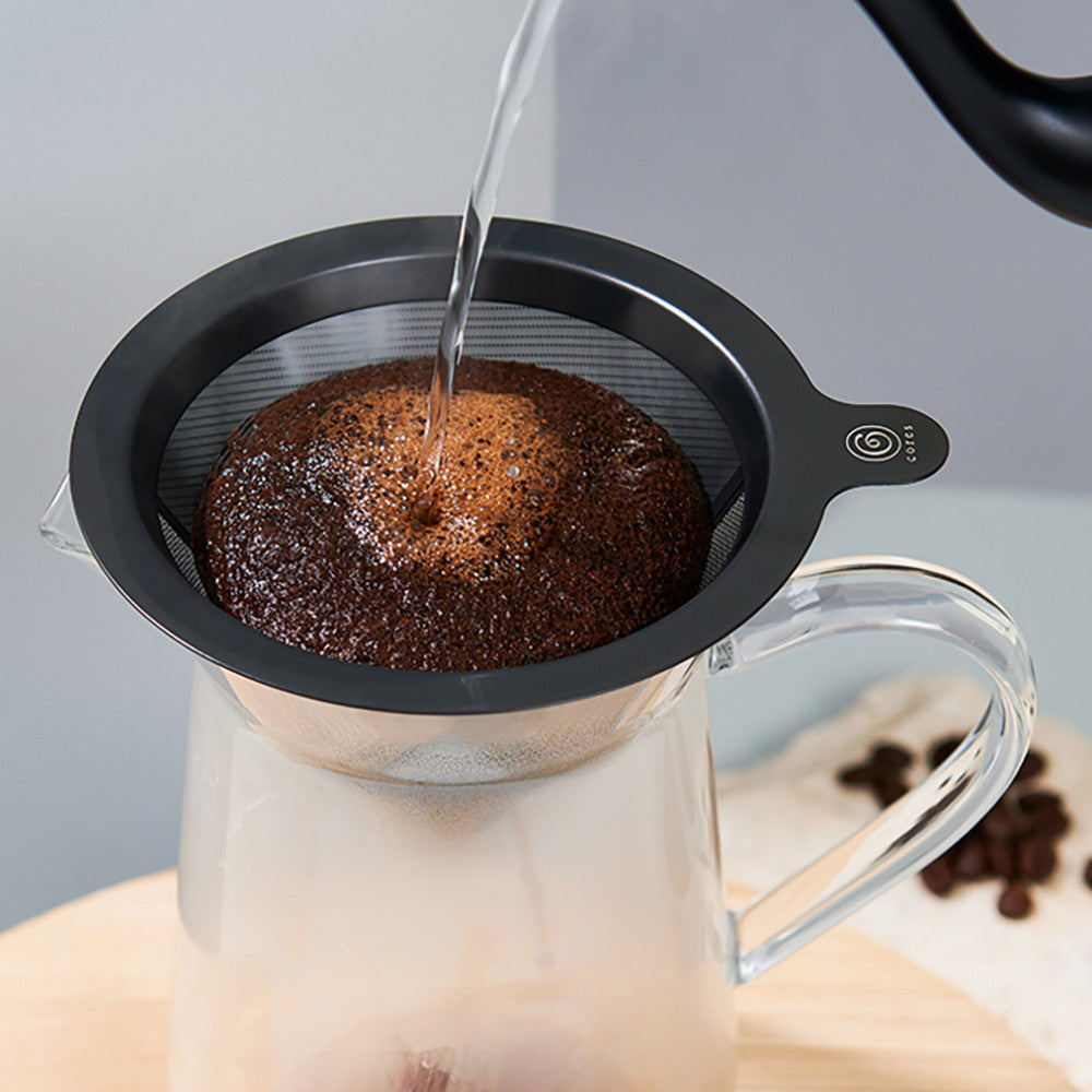 フィルター素材には、純金素材に次いでスペシャルティーコーヒーに適していると言われる(*1)、チタンをコーティングしています。チタンは変色しにくく、錆びにくいので、お手入れが簡単なフィルターです。