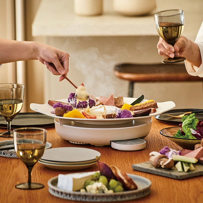 食卓で料理を楽しむため、ムダを削ぎ落したシンプルで機能的なデザイン。1200WのIHを採用しているので、火力もしっかり。タッチ式操作パネルで、温度コントロールも簡単。作りたい料理に合わせて選べる3種類の調理メニューも(加熱・低温調理・揚げ)を搭載。