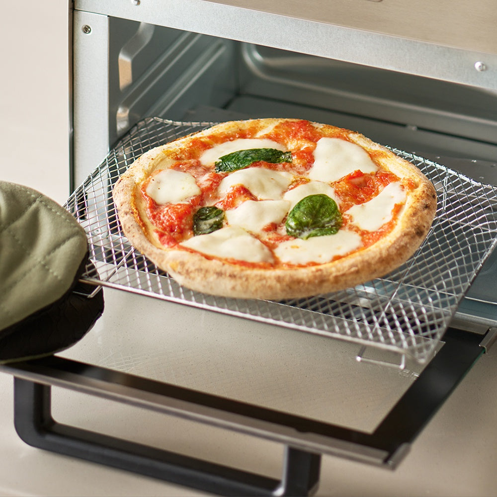 約90~230℃の間で無段階調節できるので、冷めたものの温め直しや、しっかり熱々に焼くまでと、料理のレパートリーを広げてくれます。また、230℃以上になるMAX /TOASTモードは、食パンを美味しく焼き上げることができます。
