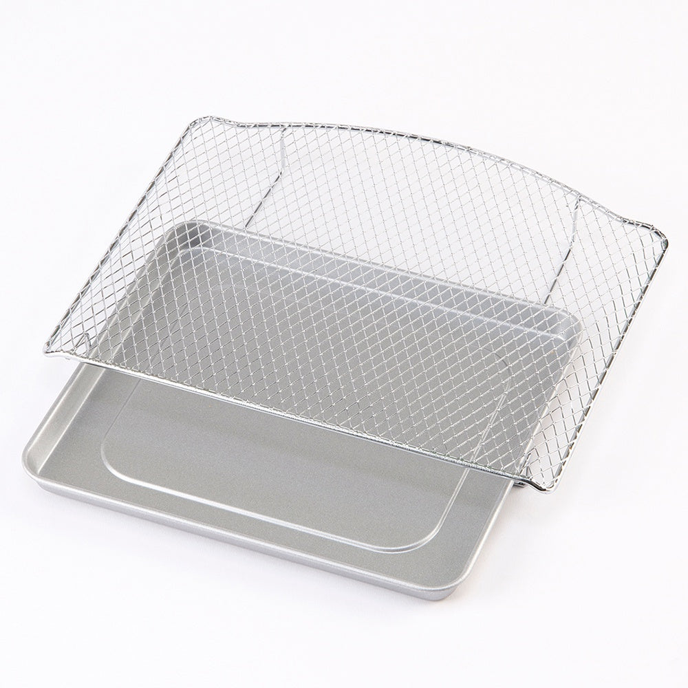 受皿をワイヤーラックの下に取り付けることができるので、食材から出る油がヒーターに落ちるのを防ぎます。また、油を落としながら焼くことができるので、揚げ物の温め直しもサクッとした食感に仕上がります。