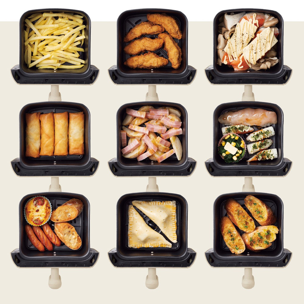 食べる頃にはしんなりしがちな市販の揚げ物も、[エアーオーブン]で温め直せば短時間でサクサクに復活! 余計な油も落ちるから、おいしくさらにヘルシーになるのも嬉しいポイントです。揚げたてのサクサク感が復活!