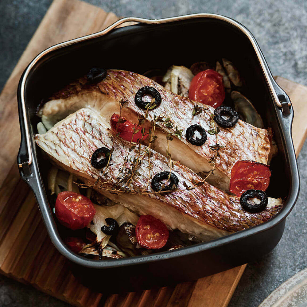 “焼く”も”蒸す”も引き出し式の[バスケット]の中で完結。キッチンが汚れにくいのも嬉しい特徴です。