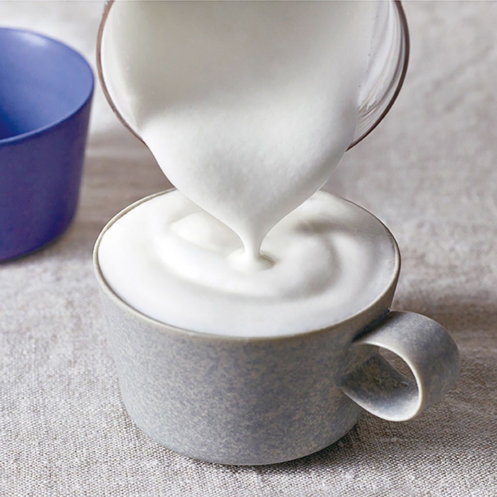 牛乳を適温に加熱してふわふわに泡立て、きめ細かいホットミルクフォームにする【Milk foam】モードも搭載。カフェラテなどのトッピングにも重宝します。