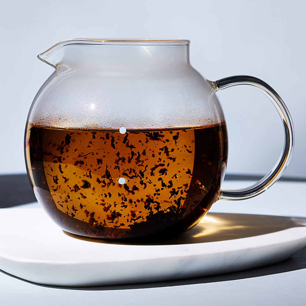 サーバーが丸い形なので、ティーポットとしてお使いいただければ、茶葉が十分にジャンピングします。
