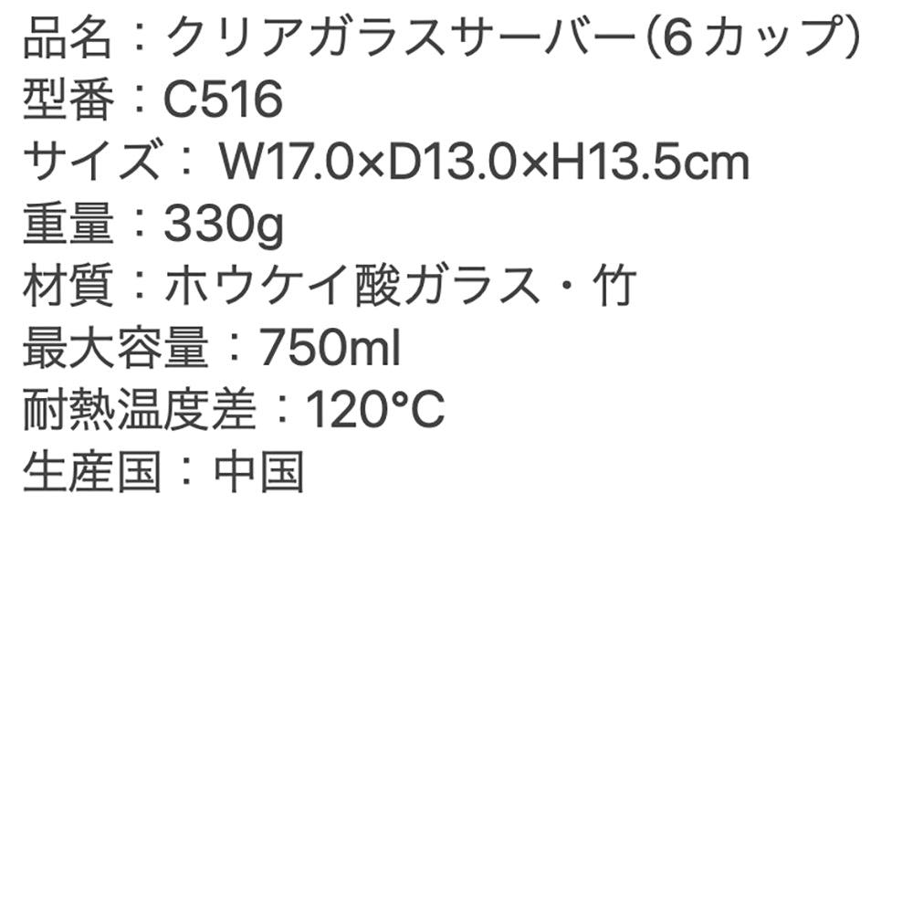 2サイズのガラスサーバーはコーヒーのハンドドリップ用として使うと、C514は4杯用(500ml)、C516は6杯用(750ml)となります。