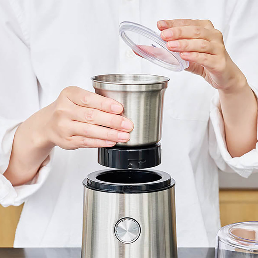 挽くと粉がこぼれて、挽く度に掃除している方は多いのではないでしょうかCoresのブレードコーヒーグラインダーは、取り外せるグラインディングボウルの中で粉を挽くので、周囲に粉がこぼれることがほとんどなく、容易に粉をフィルターに移すことができます。また、ボウルはステンレス製で、静電気に悩まされることもありません。