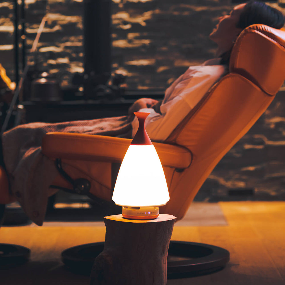 ノスタルジックなフォルムに現代的な機能、ワイヤレスBluetoothスピーカーが隠されスマホなどとペアリング音源再生、ロウソクの灯りを想わせるLEDは暖かく空間を灯します。